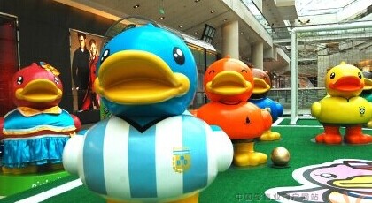 巴西世界杯即將開始,購物中心狂歡不斷。近日,17只來自11個不同國家的B.Duck小黃鴨登陸北京金融街購物中心,迎接世界杯的到來。