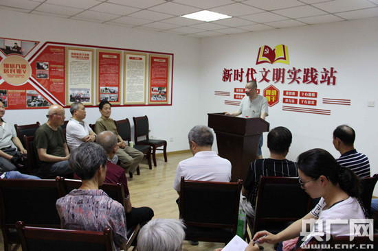 “1949年10月1日,中華人民共和國(guó)成立,今年正好是建國(guó)70周年……”8月13日上午,家家景園社區(qū)活動(dòng)室里,53歲的唐國(guó)慶正在給社區(qū)群眾說黨史。唐國(guó)慶是一名社區(qū)居民黨員,自幼愛研究黨史、軍史,能將一個(gè)個(gè)黨的歷史故事說得生動(dòng)鮮活,深受聽眾好評(píng)。