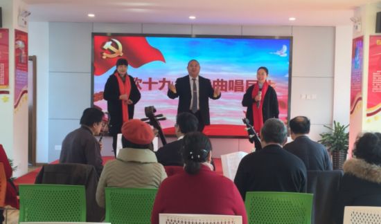 雖然距離赤闌橋“兩應(yīng)”黨群服務(wù)中心“開張”不到一個月的時間,但周邊居民參與積極性非常高。走進(jìn)中心二樓一看,益興黃梅戲團(tuán)正在進(jìn)行“謳歌十九大戲曲唱民生”的表演。一群中老年人唱戲的、敲鼓的、拉二胡的,忙得不亦樂乎。