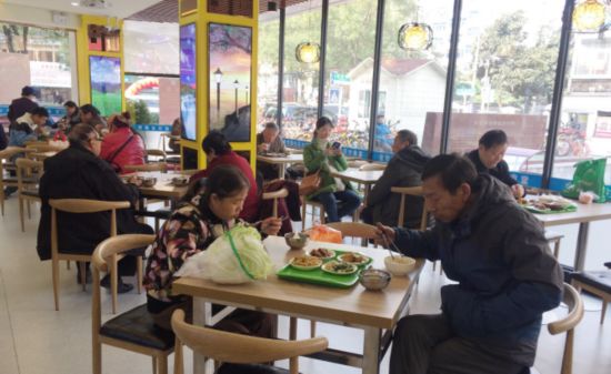 時值中午,一樓的社區(qū)食堂里已經(jīng)有不少人正在用餐。居民朱明香在老年大學(xué)上學(xué),午餐就在這里解決!耙粋人不想做飯,就可以來這吃,不僅價格合理,還吃的放心!