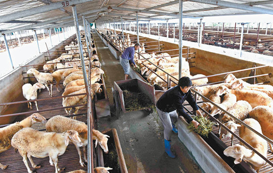 近日,在省標(biāo)準(zhǔn)化養(yǎng)殖示范基地——廬江縣祥瑞養(yǎng)殖有限公司里,工人正在按標(biāo)準(zhǔn)化養(yǎng)殖法給湖羊喂草。今年,該縣冶父山鎮(zhèn)依托“祥瑞”公司成立了湖羊養(yǎng)殖扶貧產(chǎn)業(yè)園,采取“龍頭企業(yè)+合作社+貧困戶”的模式,讓貧困戶每年收獲保底紅利4000元,幫助557戶貧困戶踏上養(yǎng)羊脫貧路。通訊員 周躍東 攝
