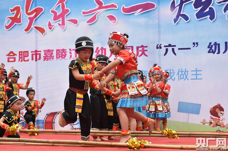 央廣網(wǎng)合肥6月1日消息 5月31日,合肥市包河區(qū)煙墩街道順園社區(qū)走進合肥市嘉陵江路幼兒園,開展“歡樂六一 炫舞童年”團體舞蹈活動。(任蘭 攝)