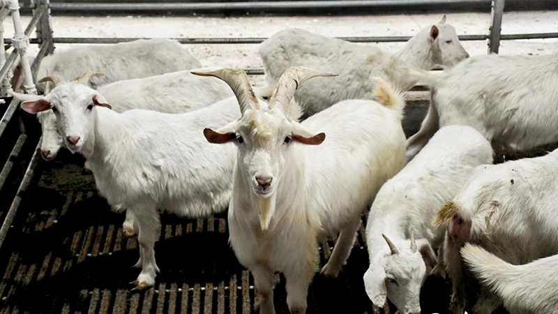 蕭縣白山羊?qū)儆谄と饧嬗眯,體形不大,體軀緊湊結(jié)實;額寬嘴尖,面部稍凹,眼大有神,肋骨開張,背腰平直,四肢較長,蹄質(zhì)結(jié)實呈蠟黃色,尾粗短上翹。蕭縣白山羊羊肉肌肉呈深紅色,脂肪白色有光澤,肌肉纖維細(xì)、富有彈性,切面濕潤、不黏手,有大理石花紋;煮熟后,肉湯澄清透明,白色脂肪團(tuán)聚于肉湯表面,富有香味和鮮味;肉質(zhì)軟嫩多汁,口感鮮美,膻味淡。