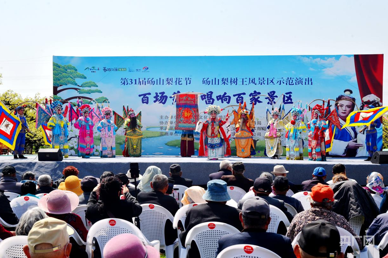 4月7日至12日,“百場黃梅唱響百家景區(qū)”戲曲示范演出在梨樹王景區(qū)舉行,以戲為媒、以花為景,深度融合經(jīng)典戲曲、非遺傳承與文旅惠民,花香與戲韻交織,當?shù)厝罕姾陀慰凸操p梨園春色、聆聽名家唱腔,讓非遺文化在花海間煥發(fā)新生。