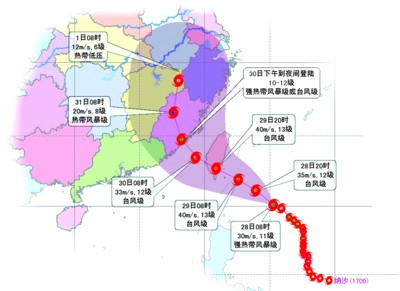 9號(hào)臺(tái)風(fēng)“納沙”路徑預(yù)報(bào)圖(7月28日08時(shí)—8月1日08時(shí))