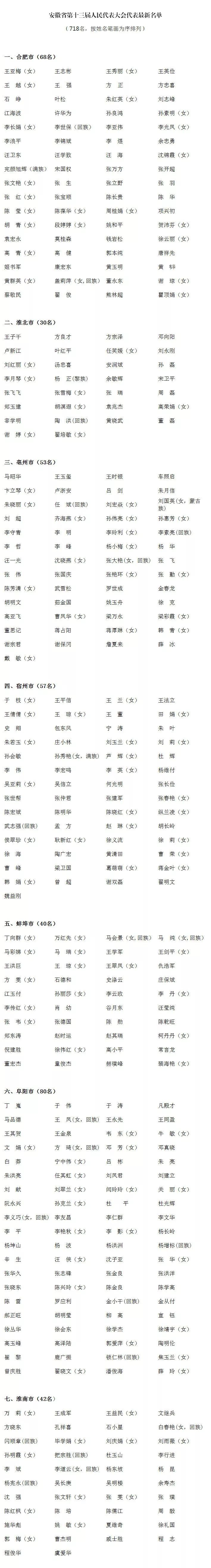 現(xiàn)在,安徽省第十三屆人民代表大會實有代表718名。