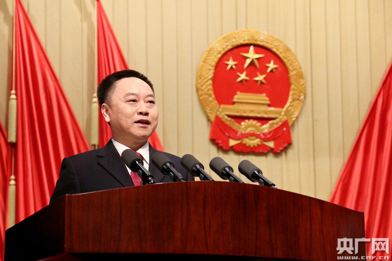 省長李國英代表安徽省人民政府向大會作政府工作報告。(央廣網(wǎng)記者徐鵬 攝)