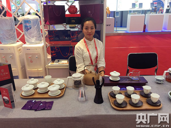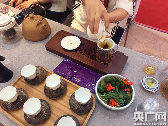 。ìF(xiàn)場(chǎng)工作人員在演示祁紅的正確沖泡方式)