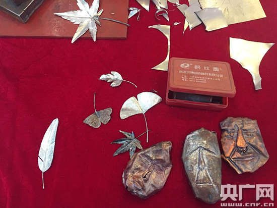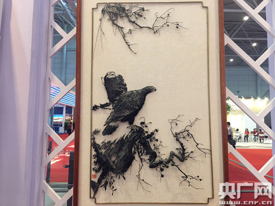 。ㄊ徍䞍(chǔ)氏鐵畫(huà)第六代傳人儲(chǔ)鐵藝在展區(qū)現(xiàn)場(chǎng)制作鐵畫(huà))