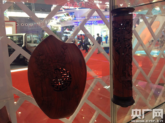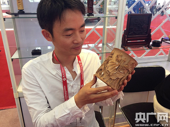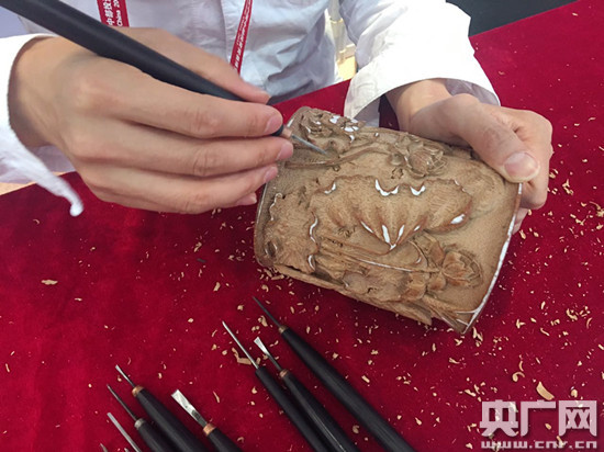 (南宋理學(xué)家朱熹第29世孫朱偉在現(xiàn)場(chǎng)展示竹雕技藝)