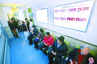 在德勝社區(qū)衛(wèi)生服務(wù)中心,很多老年患者在診室外有序候診。北京日?qǐng)?bào)記者方非 攝