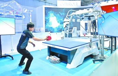 11月4日,工作人員在歐姆龍自動化(中國)有限公司展臺測試打乒乓球的機(jī)器人。新華社記者 張玉薇 攝