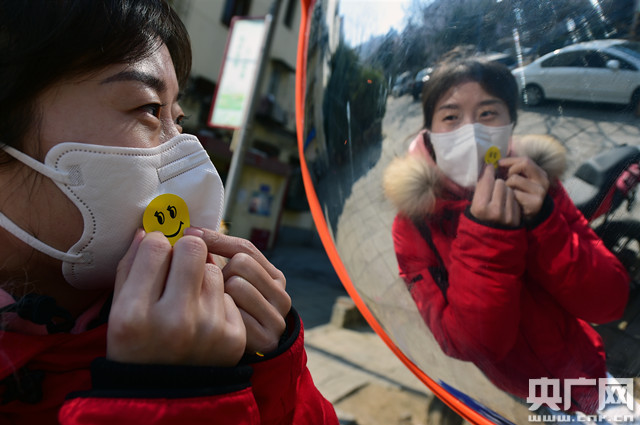 北京石景山區(qū)魯谷街道為防護(hù)口罩貼笑臉,鼓勵(lì)居民笑對(duì)戰(zhàn)“疫”(央廣網(wǎng)發(fā) 通訊員供圖)