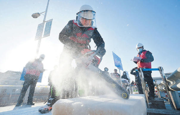 15日,南水北調(diào)中線建管局“冰期應(yīng)急搶險設(shè)備技能比武”在北京分局易縣管理處舉行,19支參賽隊進行了應(yīng)急搶險車操作、油鋸切冰、高壓熱水槍融冰、長臂反鏟挖掘機浮冰打撈四個項目的技能比試,保障冰期輸水的安全與平穩(wěn)。