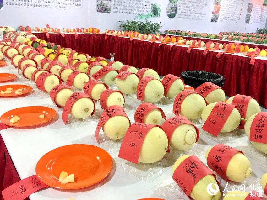 上千個西瓜甜瓜集中亮相。人民網(wǎng) 孟竹 攝 -