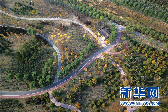 這是10月20日無人機拍攝的北京平谷濕地公園。