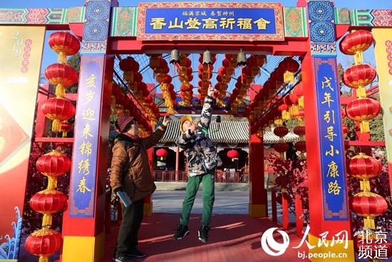 人民網(wǎng)北京2月1日電(池夢蕊)記者從香山公園管理處獲悉,2月1日至2月24日,香山公園將舉辦“福滿京城 春賀神州”春節(jié)登高祈福會。期間,將推出“游園送!、“登高祈!、“古寺納!、“松林品福”、“好禮有福”5項(xiàng)富含中國傳統(tǒng)祈福文化的活動,屆時(shí),游客可參與迎新剪紙、福豬陶泥制作、大年宮燈制作等富含中國春節(jié)傳統(tǒng)文化的活動。特別是在香爐峰,推出“福豬”造型的祈福臺,游客可以領(lǐng)取祈?ǎ瑢懮蠈胰、朋友的祝福和自己的新年心愿,在京城最高的地方祈福,祝福新的一年節(jié)節(jié)登高,收獲這份來自香山的新春“!睔。