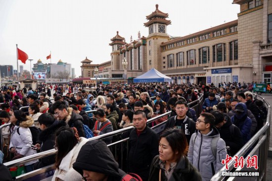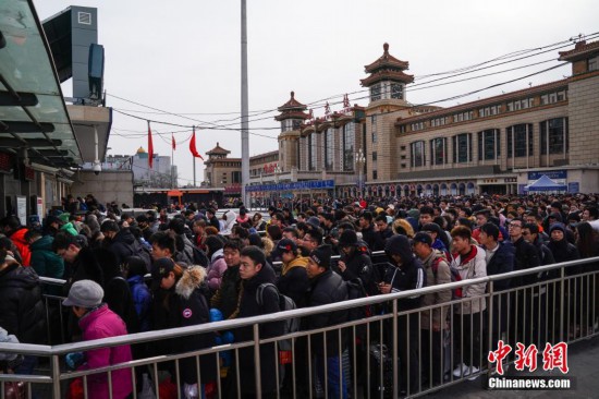 2月10日,春節(jié)長假最后一天,北京火車站迎春節(jié)假期返京客流高峰。據(jù)當(dāng)?shù)孛襟w報道,北京三大火車站的當(dāng)日抵京客流預(yù)計將達到58.2萬人,