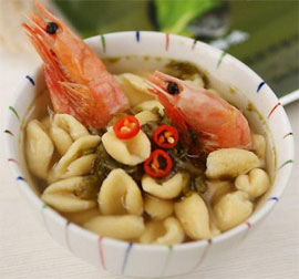 12、煮開后,加入北極蝦、煮好的貓耳朵面再次煮開即可