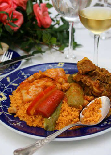 突尼斯地處北非,瀕臨地中海,連接撒哈拉大沙漠。也許是吸收了地中海明媚的陽(yáng)光和如飴的清風(fēng),融合了阿拉伯菜的風(fēng)范和法餐的精髓,突尼斯的美食自有其獨(dú)特的風(fēng)味。更令人嘖嘖稱贊的是,在品味突尼斯美食的同時(shí),佐餐的還有迦太基美酒,如畫的風(fēng)景,優(yōu)美動(dòng)人的歌舞表演,精心營(yíng)造的優(yōu)雅情調(diào)以及突尼斯人生活中永遠(yuǎn)離不了的綠色橄欖油和香濃咖啡。