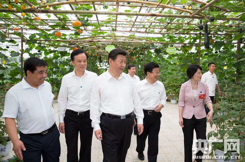 央廣網(wǎng)遵義6月16日消息(記者馬闖)寬敞高大的大棚里,架子上、地上,掛著、長(zhǎng)著各種果蔬……習(xí)近平走進(jìn)楓香蔬菜現(xiàn)代高效農(nóng)業(yè)園區(qū)的智能溫控展示大棚,拿起展臺(tái)上的圣女果、辣椒、扁豆等蔬菜和脫水的胡蘿卜干察看?吹揭慌枧枰慌鼍褪钟辛粝愕摹芭雠鱿恪保隽伺,說“還真沒見過”。他和一位正在勞動(dòng)的村民親切交流,了解土地流轉(zhuǎn)、家庭收入等情況,聽村民說“既掙了工錢,又學(xué)了技術(shù),還照顧了老人和孩子”,總書記笑著說:“那就安居樂業(yè)了。”看到這里采取“公司加專業(yè)合作社加農(nóng)戶”的方式,通過土地入股、平時(shí)務(wù)工、年終分紅,帶動(dòng)農(nóng)民脫貧致富,總書記十分高興。臨別時(shí),他對(duì)來自山東壽光的企業(yè)負(fù)責(zé)人說:“我到這里來,主要就是看中你們對(duì)農(nóng)民的帶動(dòng)作用。大棚不錯(cuò),希望繼續(xù)努力!