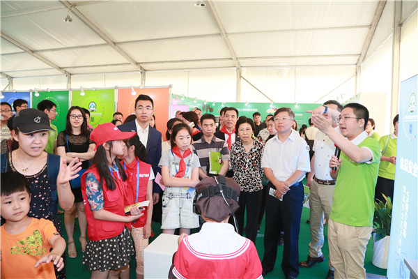 與會領(lǐng)導(dǎo)、嘉賓同兒童代表一同參觀兒童食品安全移動體驗營
