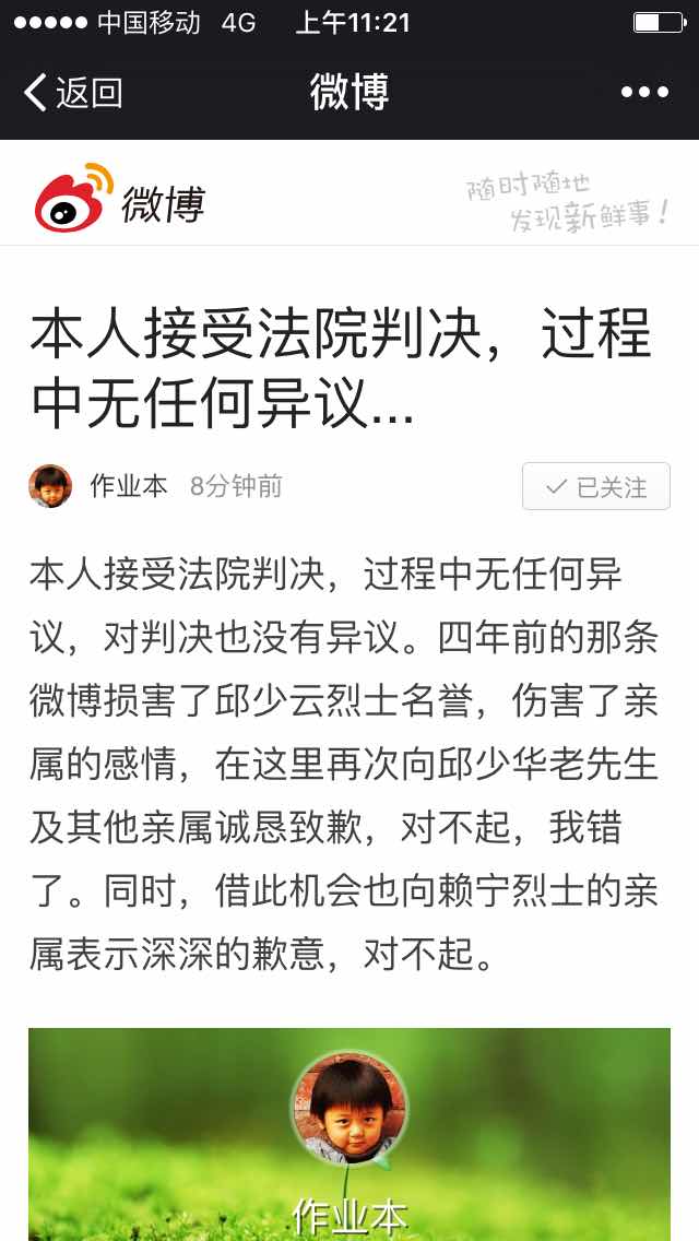隨后,孫杰通過(guò)微博表示接受判決,并向邱少華致歉。