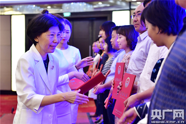 全國政協(xié)常委,中國兒童少年基金會副理事長趙東花為首批“新成長計劃公益合作學(xué)校”頒發(fā)證書