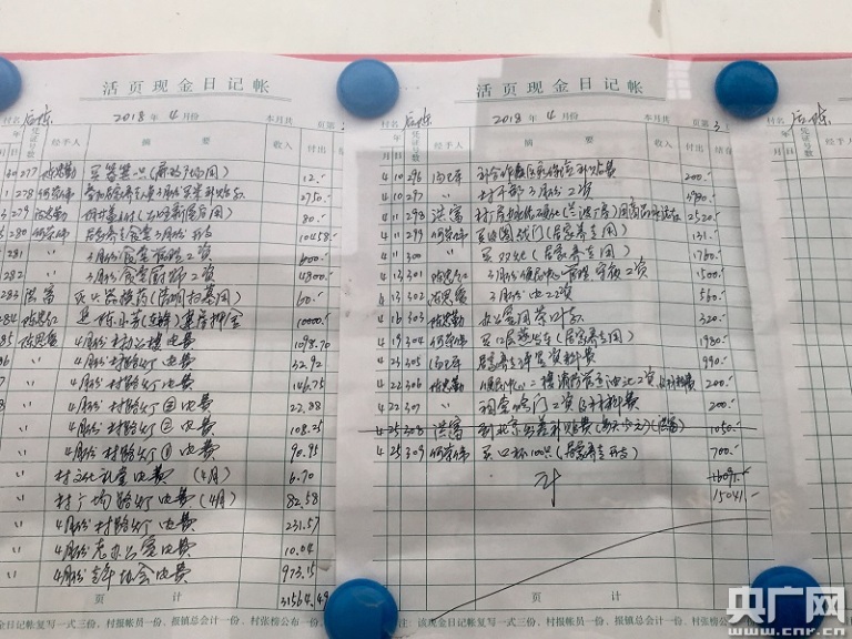 后陳村財(cái)務(wù)公開上墻(央廣網(wǎng)記者 李佳 攝)
