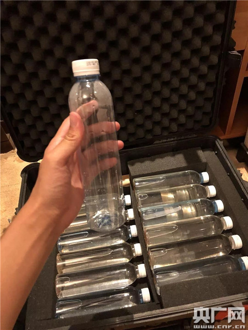 這是“大江奔流——來自長江經(jīng)濟(jì)帶的報(bào)道”采訪中,中央廣播電視總臺央廣記者一路沿長江走來所取的十多瓶大江大河的水。(央廣網(wǎng)記者 陳兆國 攝)