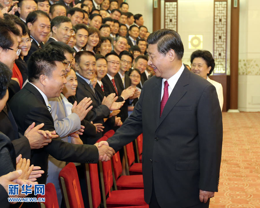 上午9時30分許,習(xí)近平等領(lǐng)導(dǎo)同志走進人民大會堂河北廳,來到代表們中間,同大家親切握手,詢問他們工作和生活情況,并同大家合影留念。