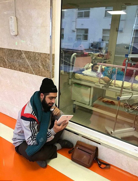 近日,一位伊朗教師因?yàn)橐粡堈掌诰W(wǎng)絡(luò)上迅速走紅,并贏得來自全世界的掌聲和贊譽(yù)。照片中,一名戴帽子的年輕男子席地而坐,一手拿著平板電腦,一手拿著電話似乎正在讀課文;而在玻璃窗的另一頭,一個(gè)小男孩正躺在床上,一邊接著電話,一邊看向窗外的男子。一張薄薄的照片卻承載了厚厚的情誼,濃濃的“師生情”感動(dòng)了眾多網(wǎng)友們。