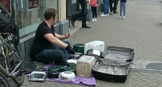 很多游走的街頭藝人會選擇商場周邊的熱鬧地方作為自己的表演場地。近日,英國薩默塞特郡的一名頗有藝術創(chuàng)造力街頭藝人就坐在商場門前,利用鍋碗瓢盆演奏了一首美妙的樂曲。