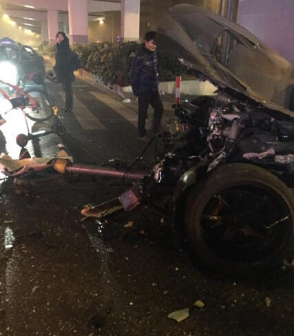 諶女士:“一輛白色GTR撞了一輛上海出租車,海博出租車公司的。整個現(xiàn)場全都是碎片和玻璃渣。”
