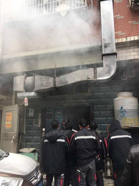 當(dāng)時飯店還沒有開門,兩人圍著飯店找了一圈才發(fā)現(xiàn),是后門廚房的油煙機著火了;饎菀呀(jīng)很大,兩人沒多想,立馬跑回單位取滅火器,并呼叫救援。再次折回的二人抱著滅火器就沖進了火場。