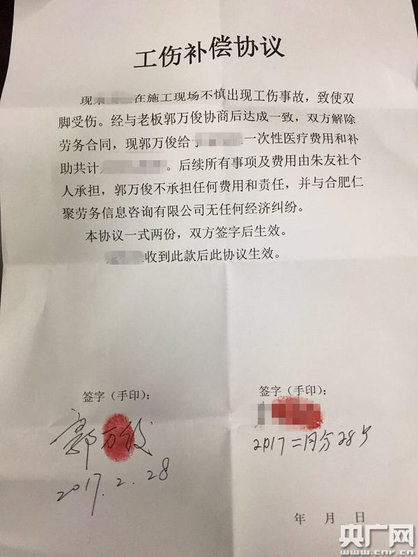 工人受傷后與老板達成協(xié)議