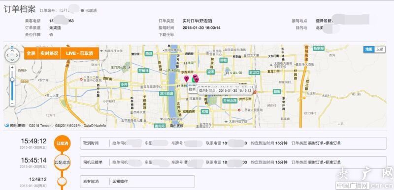 截圖顯示該手機號注冊后當天創(chuàng)建兩個訂單,乘客上車后執(zhí)法人員同時上車扣押車輛