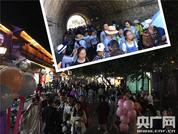 這兩天的大理古城,用摩肩接踵來形容,一點都不為過。古城的街道上,燒烤用的竹簽、食品包裝袋、礦泉水瓶等垃圾隨處可見。盡管沿途有交警指揮交通,但景區(qū)附近的道路還是嚴(yán)重?fù)矶拢钡酵砩?1點半,古城附近的道路擁堵情況,才略微有所緩解。有司機(jī)向記者反映,“太堵了這兩天。昨天我拉了六個客人,從火車站走,回古城,一般都是一個小時就到,昨天走了五個多小時!