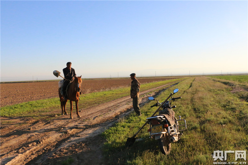 兩小時(shí)后,水坑里水不多了,阿黑收拾工具回家。路上碰見同村農(nóng)民吉格斯夾著鐵锨騎著馬來澆水,吉格斯請(qǐng)阿黑下午幫忙撒化肥、種苜蓿。說是幫其實(shí)也收錢,不過阿黑好說話,村民啥時(shí)有錢啥時(shí)結(jié)賬。正因?yàn)檫@,他似乎總有活干。阿黑說,辛苦點(diǎn)一天多掙一兩百,一年就能多掙幾萬,生活怎么能不好呢。說這話時(shí),他顯得很是自豪!