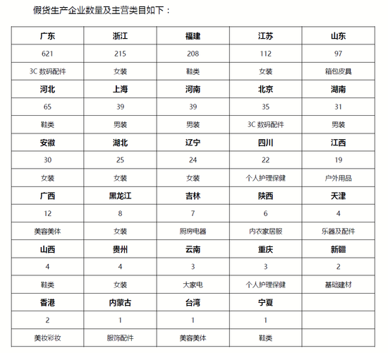 鄭俊芳介紹,“目前研判出來(lái)的是1640個(gè)生產(chǎn)假貨的工廠,這些工廠的分布其實(shí)跟團(tuán)伙分布有一定相似性。1640個(gè)疑似售假工廠的分布中,廣東有621個(gè),以3C數(shù)碼為主。福建以鞋類為主的,208個(gè)。江蘇是112個(gè),浙江215個(gè),都是以女裝為主的。排得比較靠前的省份,跟剛才那個(gè)大圖基本類似!