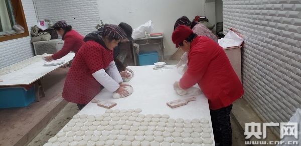 貧困戶們在楊長太家做印子饃(中央廣播電視總臺央廣記者 胡曉輝 攝)