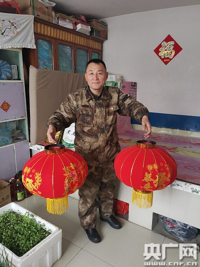 春節(jié)將至,郭景運(yùn)給貧困戶(hù)送去新春燈籠(中央廣播電視總臺(tái)央廣記者 馮志遠(yuǎn) 攝)