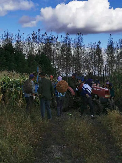 貧困戶(hù)們?cè)诓僮鳈C(jī)器收獲甜玉米(央廣網(wǎng)發(fā) 郭景運(yùn)提供)