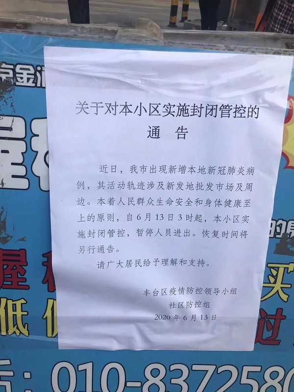 鄰近新發(fā)地市場的11個小區(qū)13日開始封閉式管理(央廣網(wǎng)發(fā) 封閉管理小區(qū)居民供圖)