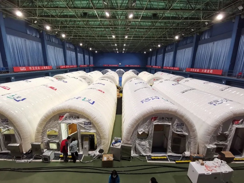 杜玉濤說:“它對場地有比較大的要求。通過吹氣,快速把實(shí)驗(yàn)空間搭建起來,里面有負(fù)壓的設(shè)計,(還可以滿足)空氣凈化的要求。所有分區(qū)都有嚴(yán)格的對實(shí)驗(yàn)人員的保護(hù)措施,以及對樣本的保護(hù),這些都是集成一體的!