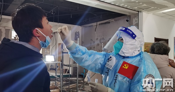 王靜說,雖然醫(yī)護(hù)人員已經(jīng)有過多次采集核酸樣本的經(jīng)驗,但她還是忍不住要到每一個點去看看,生怕哪個環(huán)節(jié)不夠仔細(xì),影響整個檢測結(jié)果。她告訴記者:“我到這些點主要是看每個醫(yī)務(wù)人員的操作是否規(guī)范,有沒有在采集下一個人之前進(jìn)行手消毒,看操作的深度夠不夠,采集的兩邊是不是夠次數(shù);另外,看整個流程是不是順暢,和志愿者之間的配合是不是很完美。這主要是為了保證整個采集過程很流暢地走下來,不要讓老百姓在外面長時間等待!