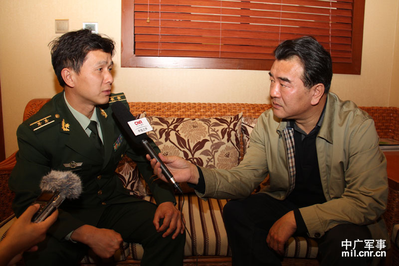 報(bào)道團(tuán)記者王求采訪武警交通部隊(duì)二總隊(duì)五支隊(duì)總工程師陳順先 中廣軍事記者劉鵬攝