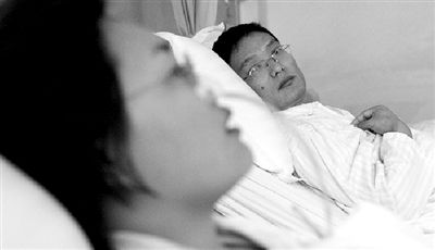 手術(shù)前,田新丙望著躺在病床上的妻子蘇丹。