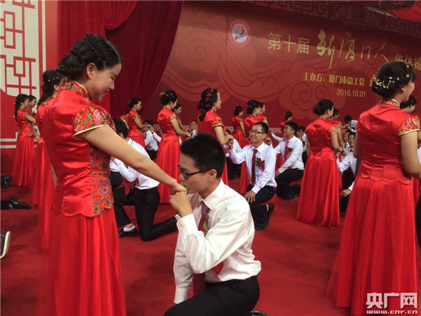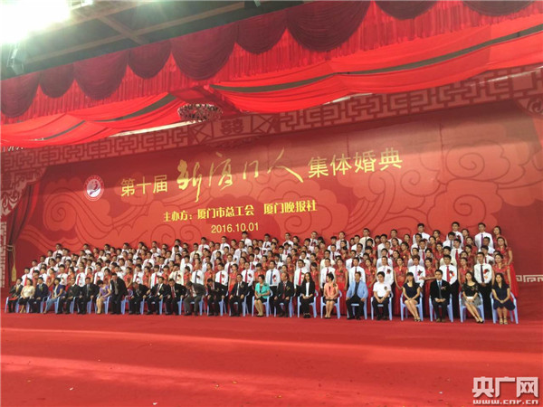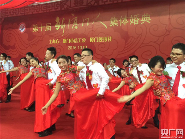 央廣網(wǎng)廈門10月1日消息(記者陳庚)據(jù)中國之聲《央廣新聞》報道,今天上午,第十屆“新廈門人”集體婚禮在廈門市工人體育館舉行,廈門市相關領導為百對新人證婚。