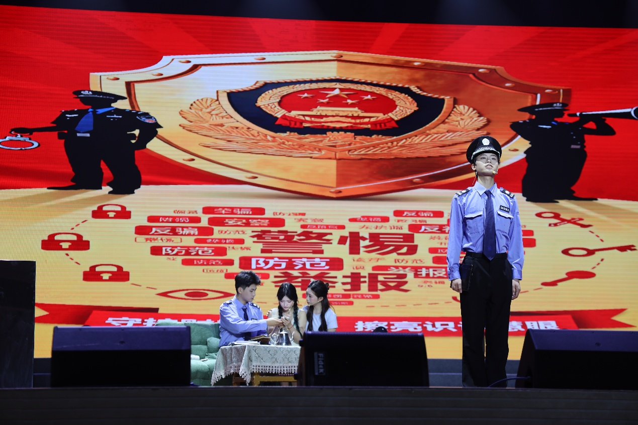 活動現(xiàn)場,來自合川區(qū)10余所大、中、小學(xué)師生及公安干警、基層工作者,通過情景劇、歌舞、朗誦、器樂合奏等豐富形式,將國家安全知識融入藝術(shù)表達。區(qū)公安局帶來的情景演繹《平安合川》,以真實案例再現(xiàn)公安干警守護萬家燈火的日夜堅守;重慶對外經(jīng)貿(mào)學(xué)院帶來的情景劇《電詐必防 國安共守》,用生動表演揭示了網(wǎng)絡(luò)安全與每個人的密切關(guān)聯(lián);龍市小學(xué)的孩子們用器樂合奏《歌唱劉文學(xué)》,讓英雄精神在稚嫩指尖流淌;重慶應(yīng)用技術(shù)職業(yè)學(xué)院的女子群舞《薪火傳紅巖 青春筑國安》,以柔美而有力的舞姿詮釋青春護國的堅定信念……劇場內(nèi),觀眾的情緒隨著節(jié)目起伏,掌聲、喝彩聲不斷。